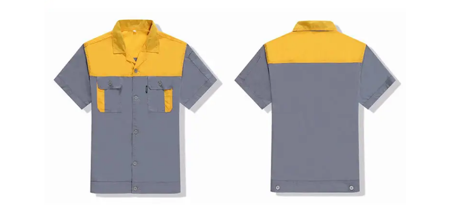 夏季短袖工裝時尚款系列此款工作服面料采用工裝面料品牌廠家四川意龍集團,面料紋路清晰,夏天貼身不刺激皮膚,保證了衣服不起球,不掉色,不縮水。縫紉線采用多股絲光錢,衣服更結實,更彰顯品質。
